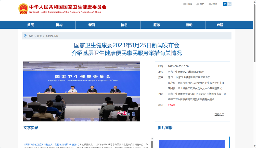 时 间:2023年8月25日地 点:国家卫生健康委2号楼新闻发布厅