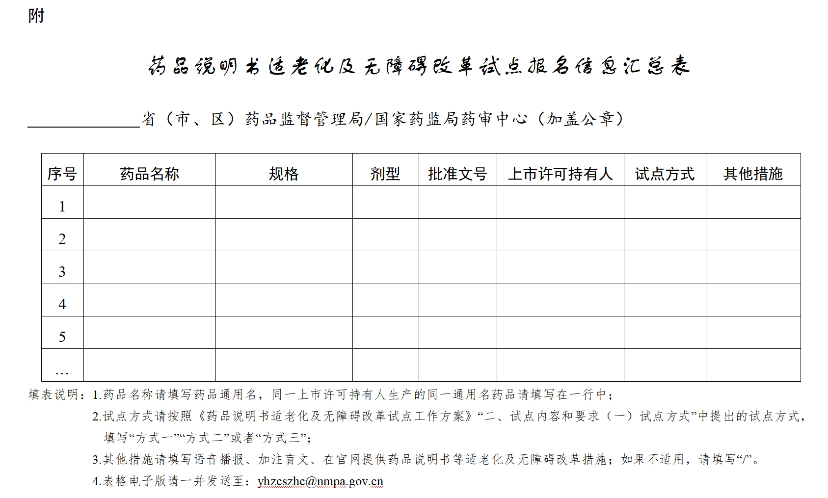 附:药品说明书适老化及无障碍改革试点报名信息汇总表