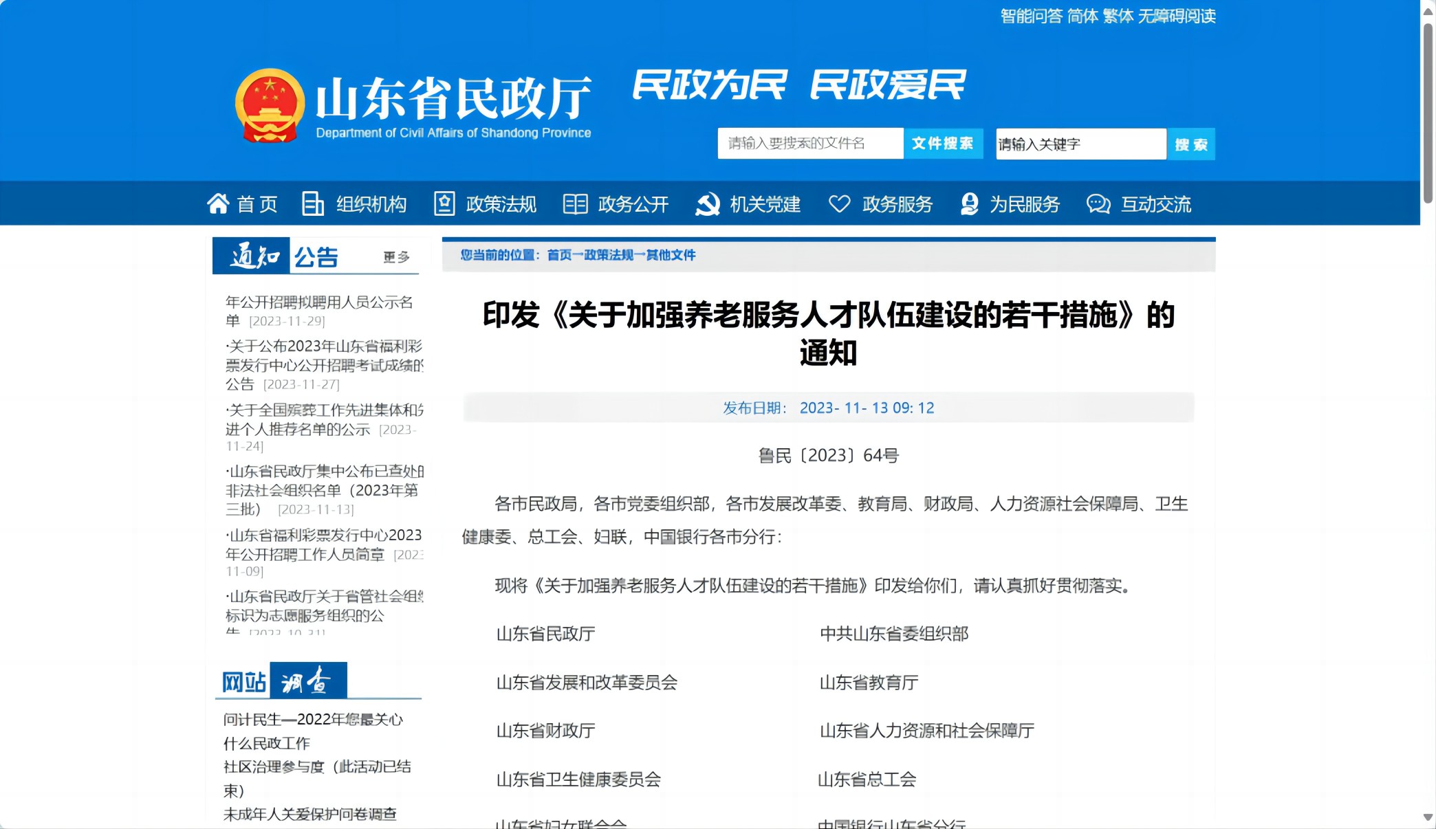 印发《关于加强养老服务人才队伍建设的若干措施》的通知