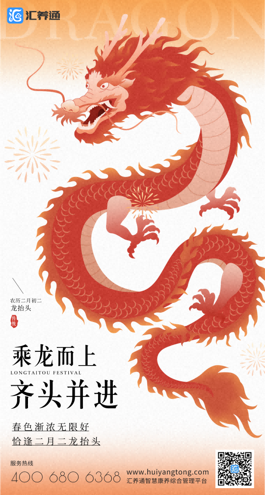 龙抬头(农历二月二日),又称春耕节、农事节、青龙节、春龙节等,是中国民间传统节日。“在农耕文化中,“龙抬头”标示着阳气生发,雨水增多,万物生机盎然。自古以来人们亦将龙抬头日作为一个祈求风调雨顺、驱邪攘灾、纳祥转运的日子。