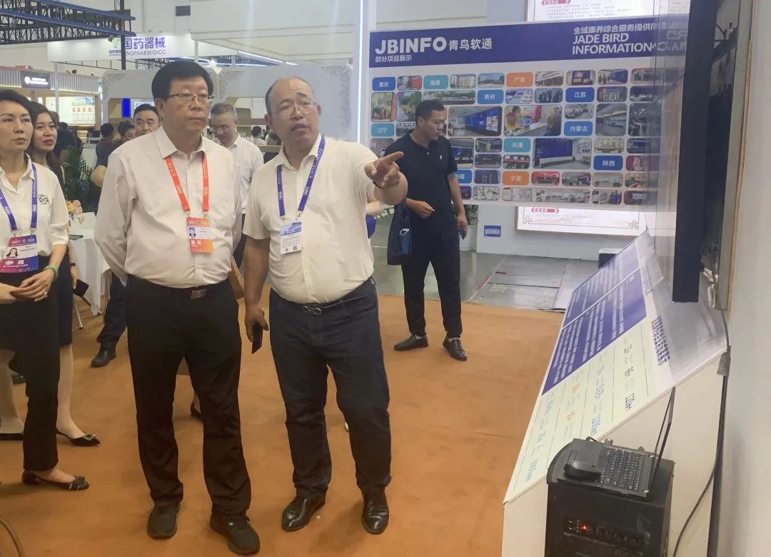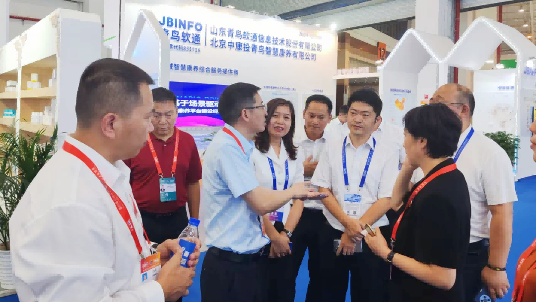 云南省民政厅一级巡视员吴玉荣一行莅临青鸟软通智慧康养展位,对青鸟软通的智慧康养云平台、家庭养老床位建设方案、全域养老服务模式予以肯定。并表示:“希望青鸟软通能把全域智慧康养模式、家床建设的经验,带入云南。”