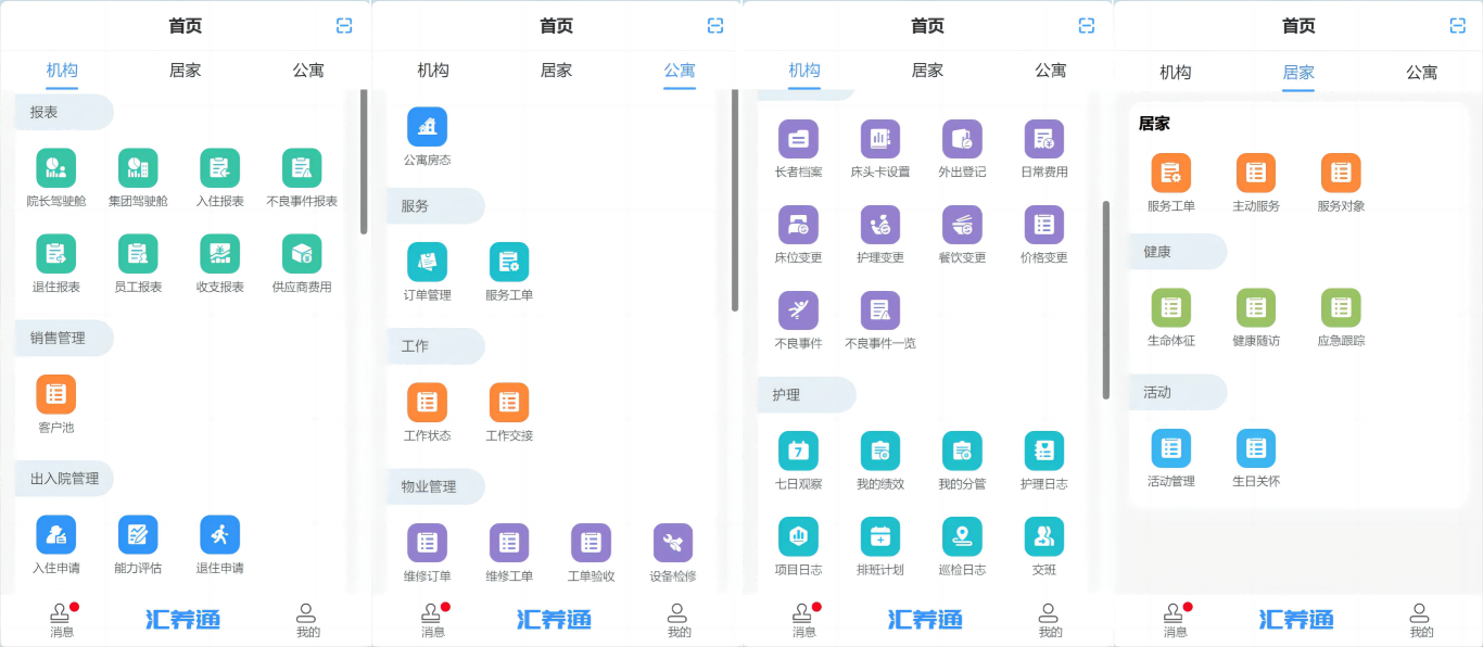 总的来说,汇养通APP的全新视觉升级,不仅使其外观更加简单易用,也提升了其实用性和用户体验,便于养老企业内部各角色进行操作。未来,汇养通将继续致力于为养老企业提供先进的信息化解决方案,助力企业内部提质增效,优化成本。