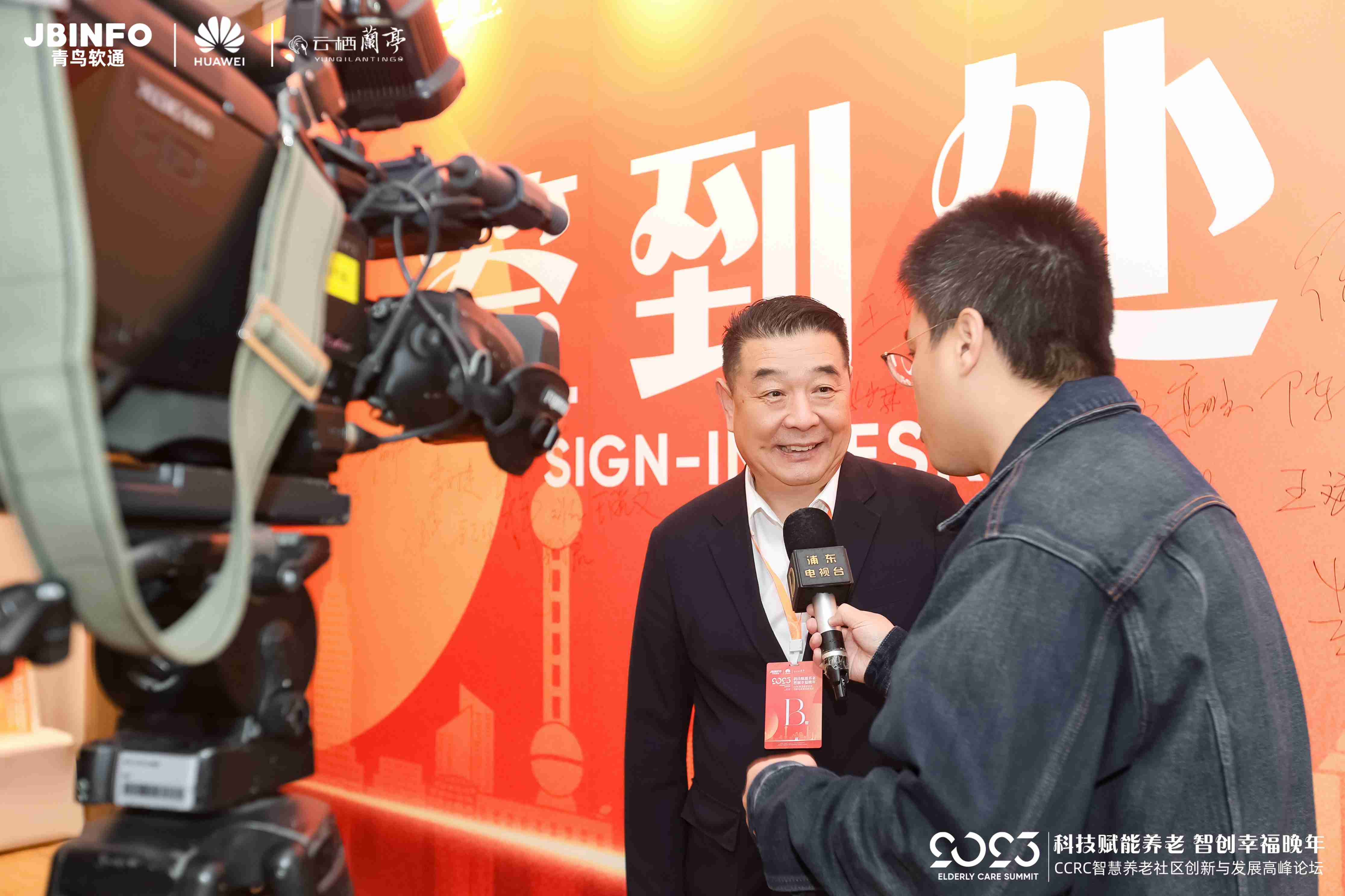 (图为东久企业发展(上海)有限公司总经理王新林,开场前接受浦东电视台采访)