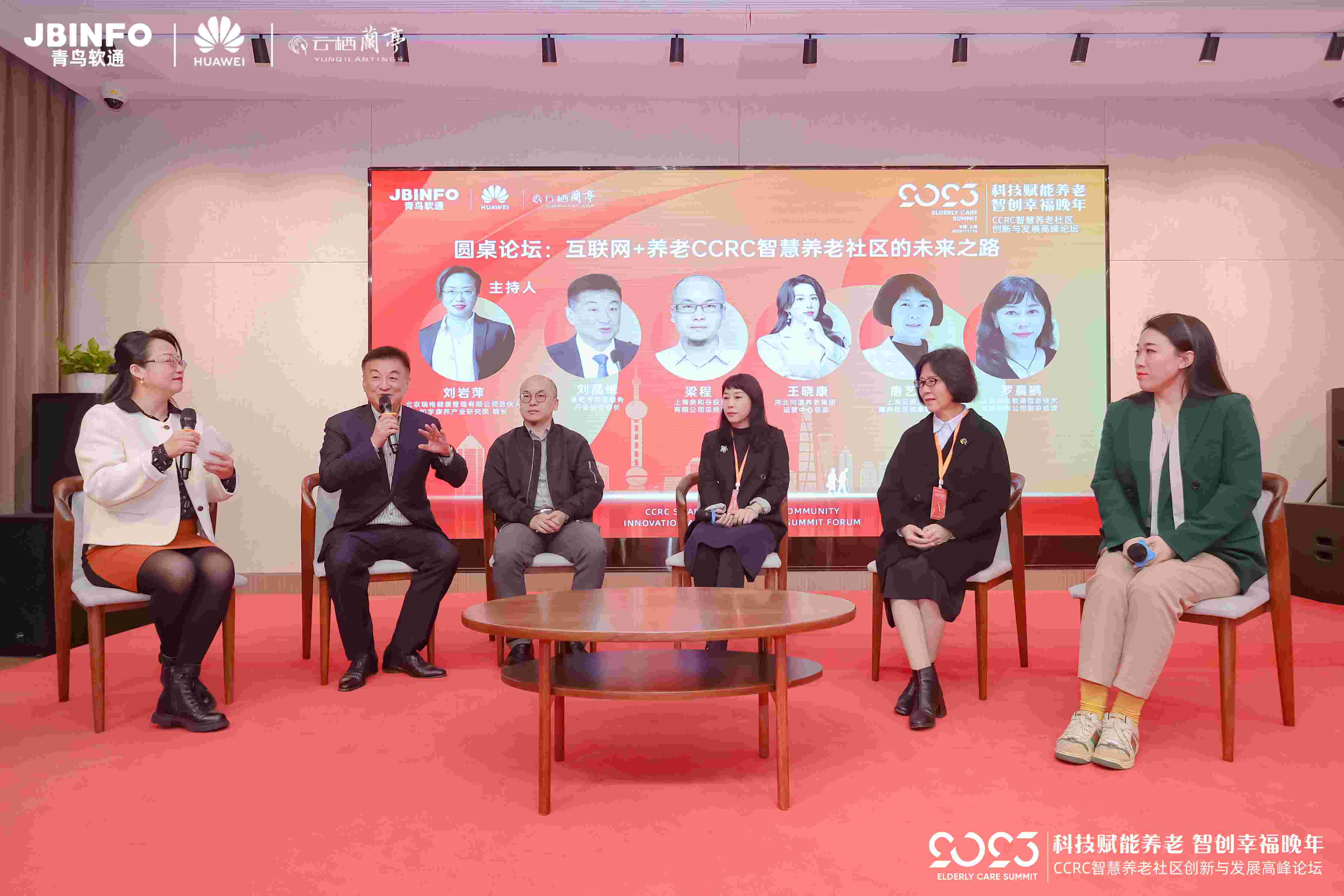 在圆桌论坛环节,我们围绕两个话题展开了深入而广泛的讨论。首先,我们邀请了北京瑞格健康管理有限公司合伙人/知学康养产业研究院院长 刘岩萍女士主持第一场圆桌论坛“互联网+养老CCRC智慧养老社区的未来之路”。参与圆桌的嘉宾有山东青鸟软通信息技术股份有限公司副总经理罗晨鹂,贵阳市养老服务行业协会会长刘晶维,上海亲和谷投资有限公司总经理梁程,河北问道养老集团运营中心总监王晓康,云栖兰亭康养社区健康顾问唐艺珍。